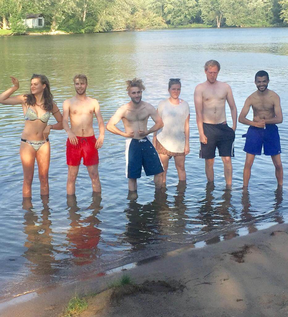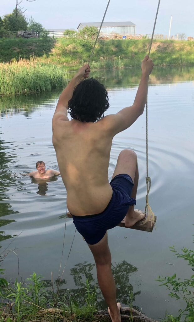Swimming in our own pond on the farm. Full afternoon on a hot day